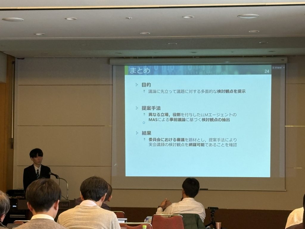◆ 松本大誠, 横山想一郎, 山下倫央, 川村秀憲 : 国会審議を対象としたLLMエージェントによる事前議論に基づく検討観点抽出手法の提案